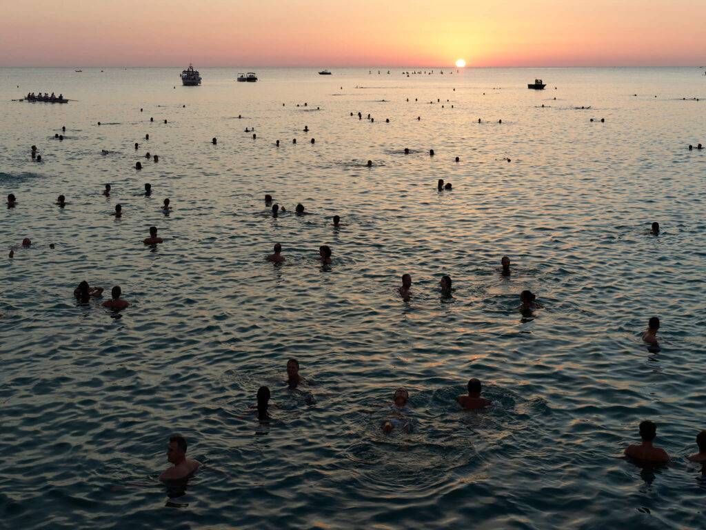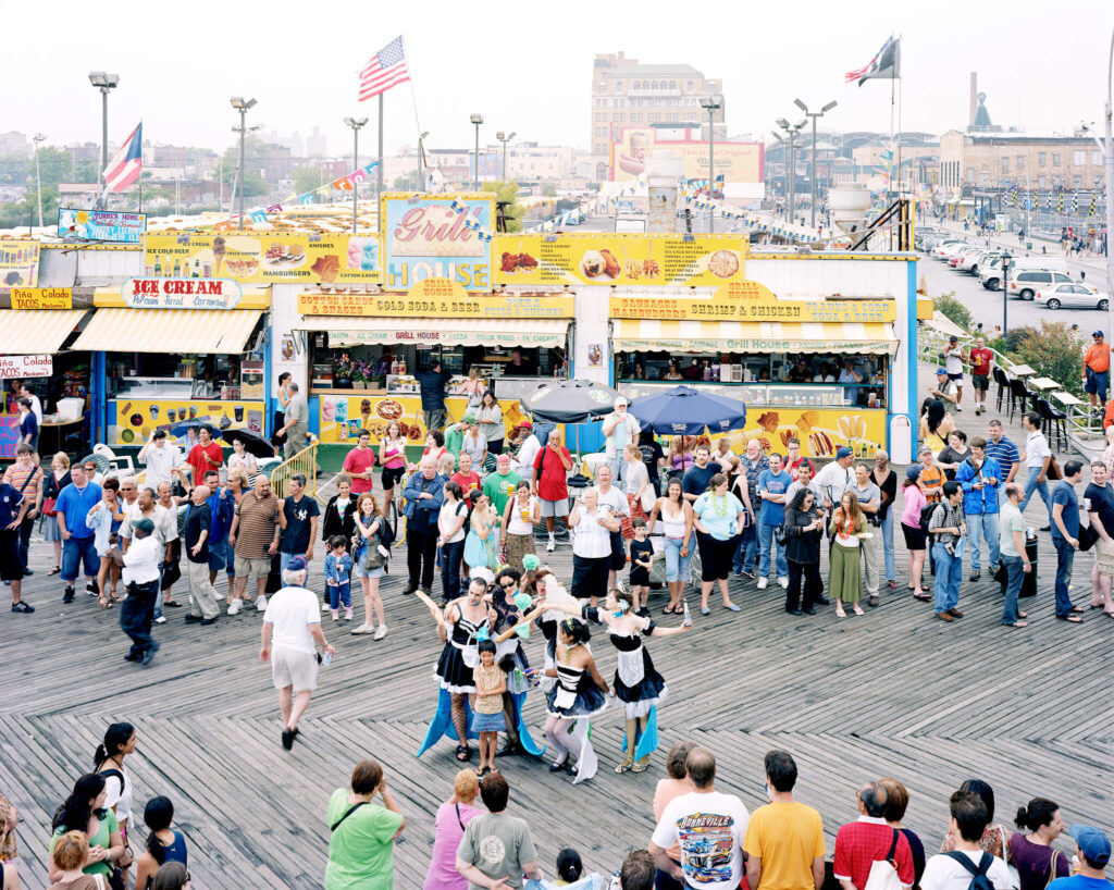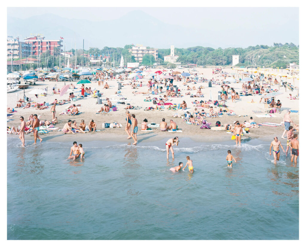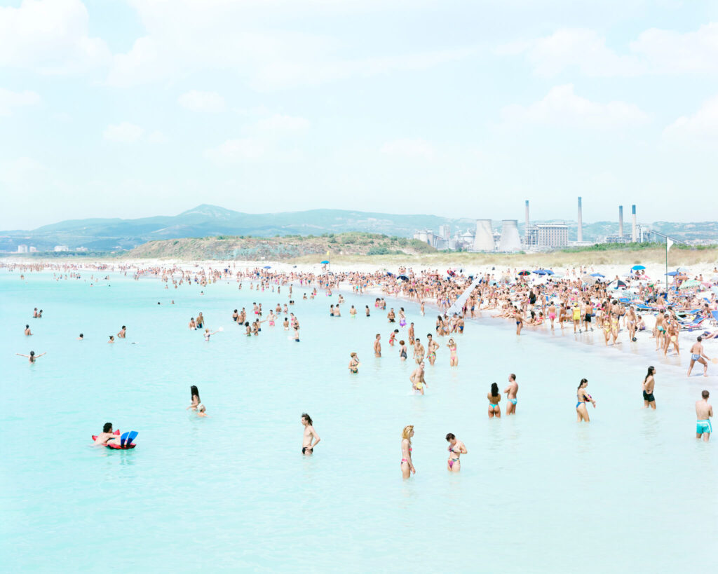 Massimo Vitali series of Italian beach panoramas began in 1994, in the light of drastic political changes in Italy. He started to observe his fellow countrymen very carefully. He depicted a “sanitized, complacent view of Italian normalities”, at the same time revealing “the inner conditions and disturbances of normality: its cosmetic fakery, sexual innuendo, commodified leisure, deluded sense of affluence, and rigid conformism”. [Whitney Davis, “How to Make Analogies in a Digital Age” in October Magazine, Summer 2006, no. 117, pp. 71-98.]