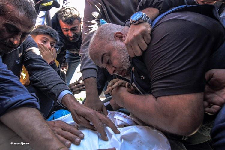 A Palestinian man bids farewell to his daughter, who was killed in an Israeli bombing the targeted the emergency department inside Al-Shifa Medical Hospital